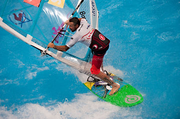 Vingt cinq ans après la 1ère édition, Robert Teriitehau, Eric Thiémé, Antoine Albeau et bien sûr la légende vivante, Robby Naish, ont remis le feu à coup de jibes et de forward dans l'enceinte de Bercy - L'occasion de shooter les idoles de sa jeunesse pour VSD // Paris AccorHotel Arena - 2 avril 2016