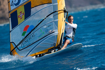 En préparation pour les prochains jeux olympiques de Londres, le véliplanchiste portugais Joao Rodrigues s'entraine sur ses eaux natales au large de Funchal // Archipel de Madère (Portugal) - 4 octobre 2011